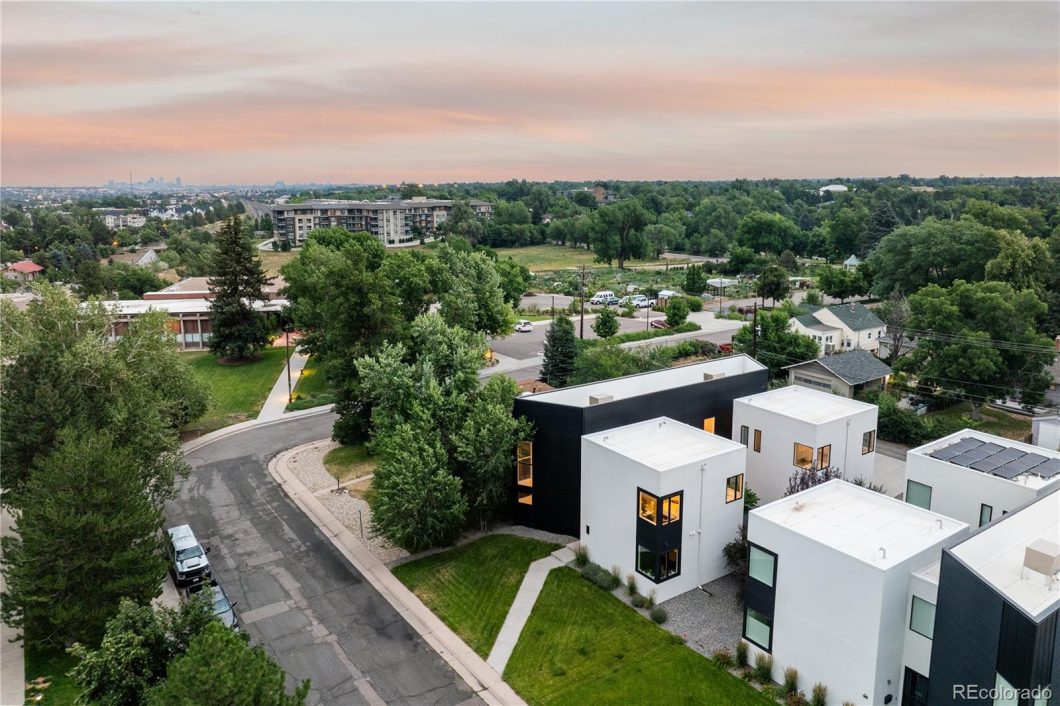 This newly built modern home is a showstopper in every sense—offering cutting-edge architecture, luxurious outdoor living, and an unmatched walkable location just steps from Sterne Park and Downtown Littleton. Bold in design and flawless in execution, this one-of-a-kind residence blends clean lines, soaring ceilings, and walls of glass to create an airy, light-filled refined retreat. At its center, a private tiled courtyard invites seamless indoor-outdoor living—complete with a built-in Napoleon grill and bar, dual fountains, custom fire pit, and a Bullfrog hot tub that turns every day into a resort-style experience. A second fenced backyard and garden adds function and flexibility, offering a dedicated space for kids, pets, and play—rare for modern builds and ideal for effortless entertaining. Inside, the home is equally impressive, with thoughtful, high-end touches throughout: radiant in-floor heating for year-round comfort, smart lighting, a whole-home surge protector, Sonos in-ceiling speakers, a fully integrated security system, and custom window treatments. The designer kitchen combines beauty and utility with two dishwashers for easy hosting and cleanup, and even features a plumbed-in seltzer tap—a small but indulgent luxury that perfectly reflects the home’s attention to detail. Situated on a quiet, tree-lined street with direct access to trails, the rose garden, Buck Rec Center, and the Littleton light rail, this location puts you minutes from it all—vibrant Main Street dining, charming coffee shops, boutique shopping, and community favorites like Bacon Social House and the historic Town Hall Arts Center. Homes like this simply don’t come along very often—5916 South Sycamore is a rare architectural statement, crafted for those who value style, substance, and something truly special.